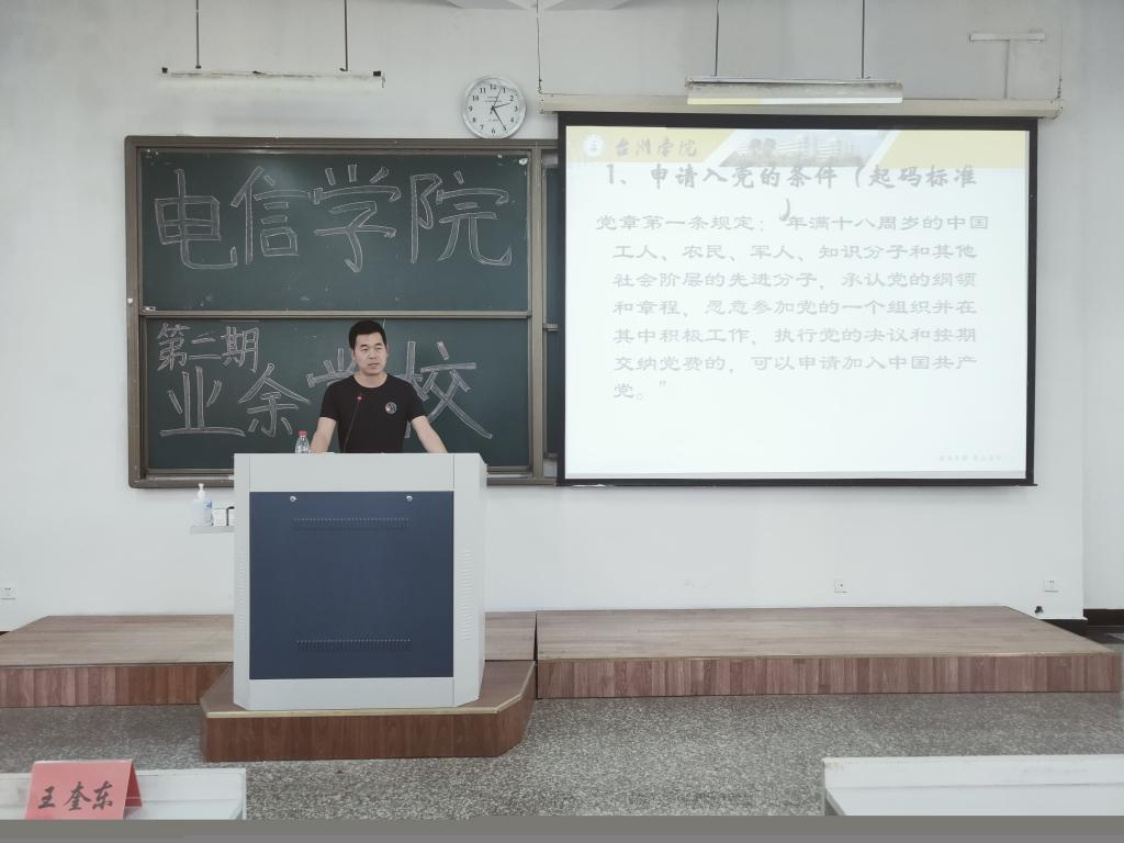 5月24日,pa捕鱼官方网站分校区举办第二期业余党校开学典礼暨党课开课仪式。公司党总支书记王奎东、副书记冯荣分别作开班动员讲话并为学员授课。物理与电子员工党支部书记陈敏、分团委书记沈迪分别主持仪式,员工党员代表、先锋队成员及202名入党积极分子参加。