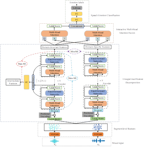 针对训练的源语料库和测试的目标语料库不同而导致跨库语音情感识别中源域和目标域之间的特征分布存在差异的问题,提出了一种采用Transformer和互信息的无监督特征分解域自适应的跨库语音情感识别方法。