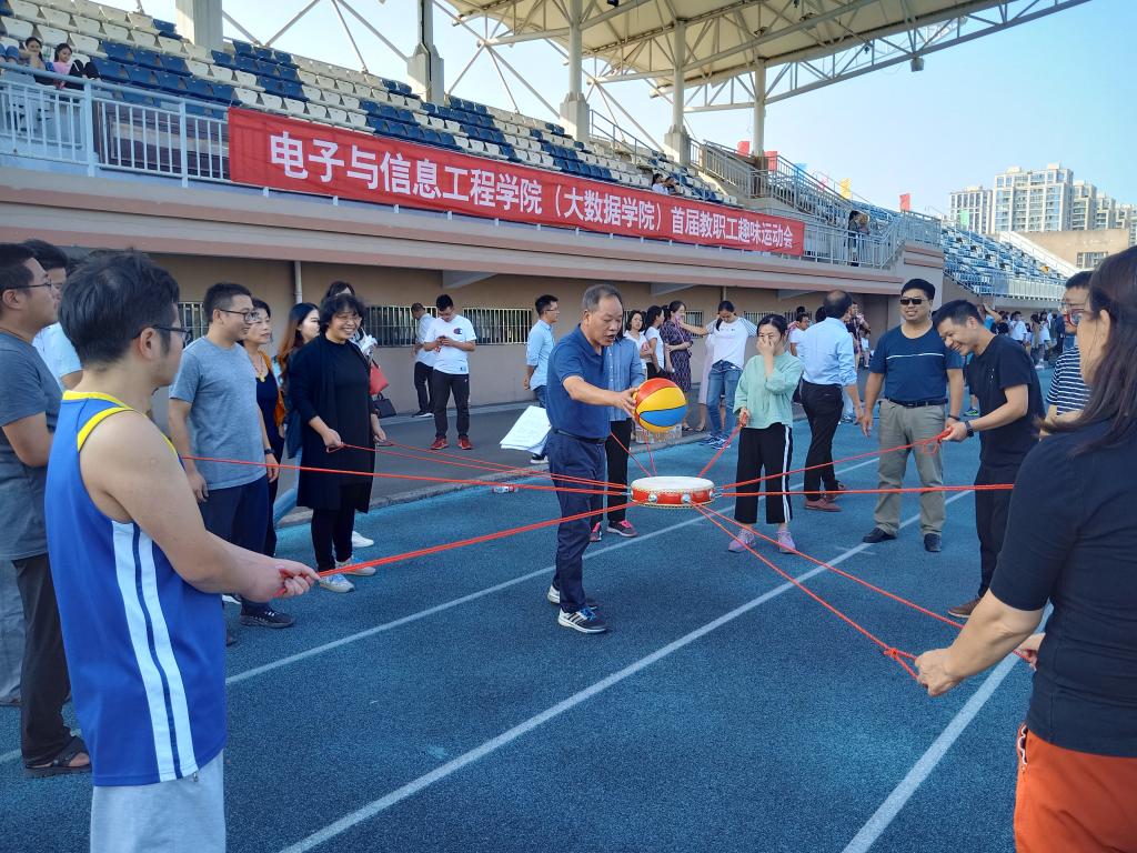 据悉,本次教职工趣味运动会全院共有100多名教职工到场,分成行政教辅、物理、数学、计算机、电子五个工会小组进行趣味竞技。项目有同心鼓、毛毛虫、大脚板、旋风跑、多人跳绳等。活动期间,男女老少齐上阵、共参与,呐喊声、欢呼声合成一片,团队合作、其乐融融,达到了快乐运动的目的。本次教职工趣味运动会在愉悦、欢乐、祥和的气氛中结束。大家没想到工作之余还有如此有意义的活动,纷纷表示以后要积极参与其中,筑就更和谐的电信之家。