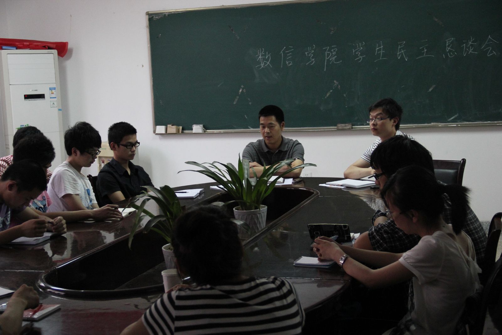 5月3日下午,数信公司在6109教室召开了员工民主恳谈会。参与此次恳谈会的有数信公司副书记王圭东,分团委书记程君岭,各班的团支书及部分同学。