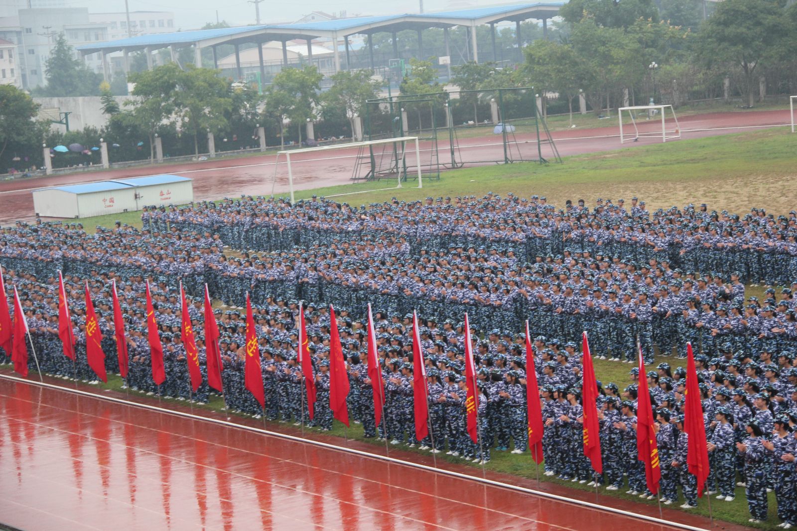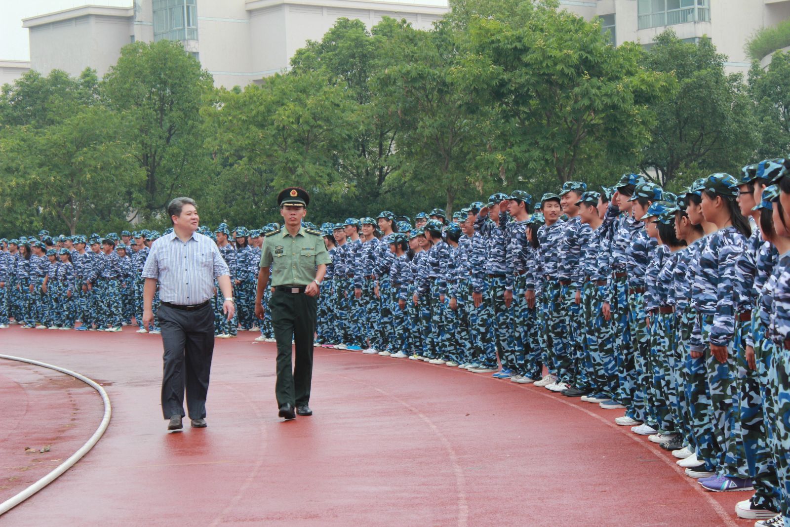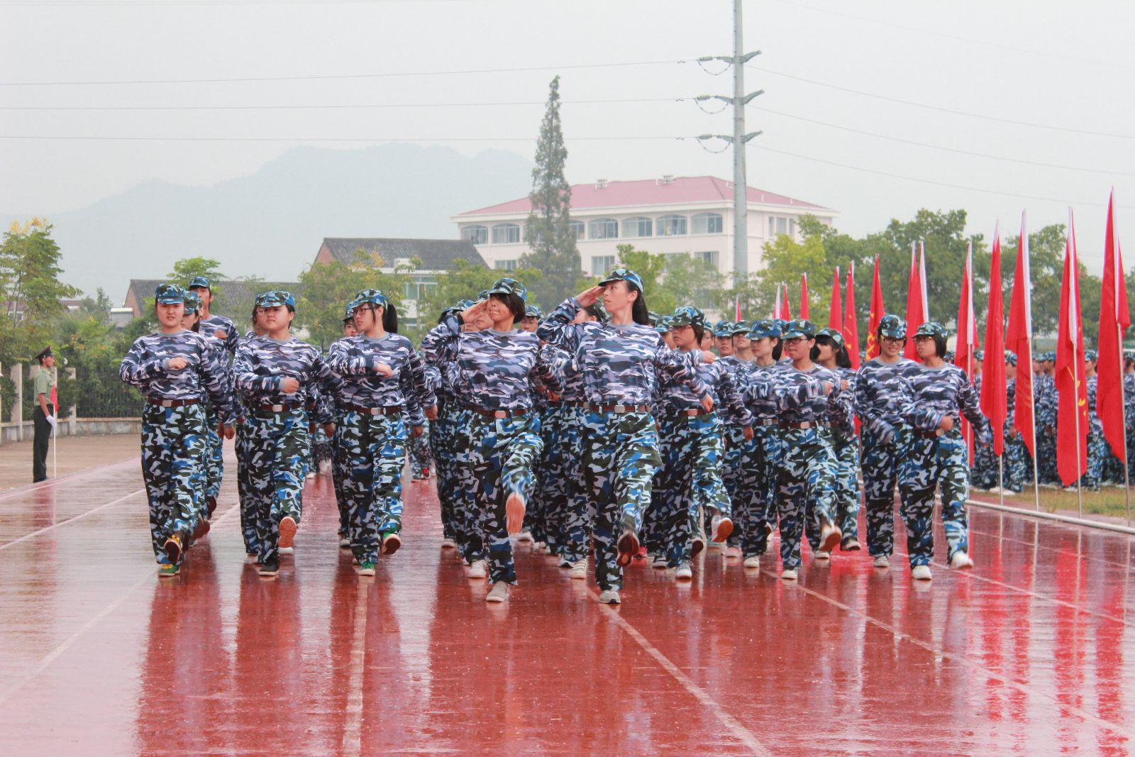 为期十天的军训对同学们来说的确是一个严酷的考验。晴雨更变,冷热交替,天气的恶劣没有动摇教官和同学们坚持训练的决心。他们顶着烈日,淋着冷雨,用饱满的热情,挺拔的军姿,整齐的步伐向全校师生诠释一个军人该有的钢铁般的意志。