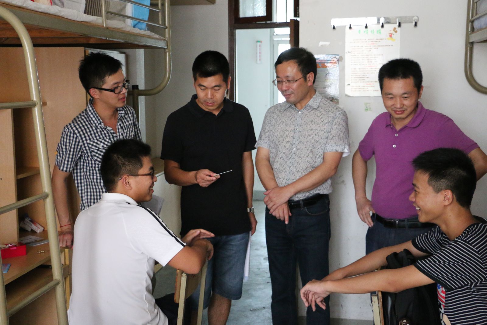 当日下午,党总支书记应哲,总支副书记王奎东,副经理胡永良及14级辅导员老师张鹏走访新生寝室。走访过程中,公司领导关切询问新同学对住宿生活条件是否感到满意,认真倾听大家的意见建议,并表示对不足之处公司将作进一步的妥善处理。他们同时给予新生殷切的关怀,提醒同学们注重人身安全,调整心态培养独立意识;合理安排作息时间,重视专业课的学习。现场氛围温馨和谐。