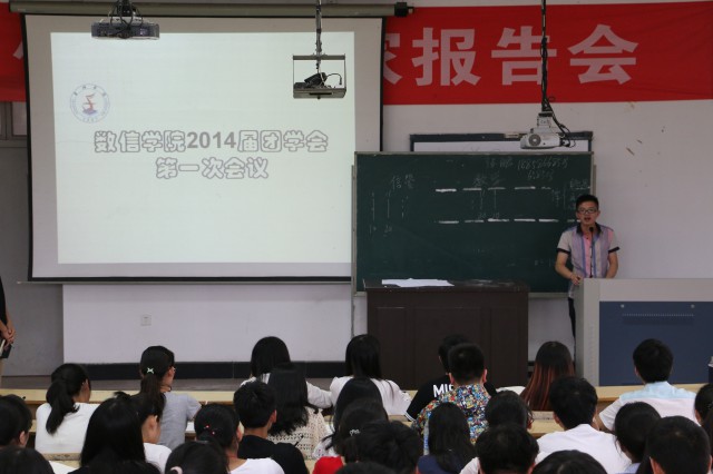 9月25日下午,数信公司新一届团学会第一次全体会议在A4教室召开。14级辅导员兼团学老师张鹏出席会议,团学会主席刘鑫主持大会。