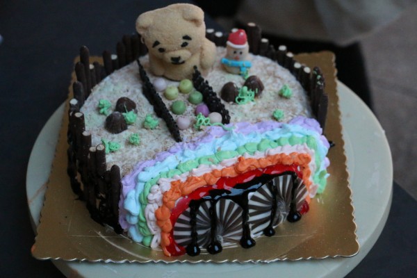 比赛现场气氛温馨活跃,并特邀了专业蛋糕师进行现场制作与指导。随着比赛开始,选手们各就各位,一时,蛋糕托盘转动如飞。制定方案,涂奶油,做装扮,铺水果,清理桌面,答题加分。各组选手协调合作,一环接一环。一个个精美的蛋糕接连完成。创意无限的小房子蛋糕,充满暖意的心形蛋糕,节日气氛浓厚的圣诞老人蛋糕......每个作品都独具创意,挑逗着在场人员的味蕾。最后,由庞珊珊领队的“小萌熊”获得一等奖。