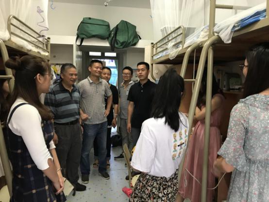 6月13日下午,数学与信息工程公司党政领导带领辅导员、毕业班班主任走访公司各毕业班员工寝室,看望慰问即将离校的2017届数信学子。