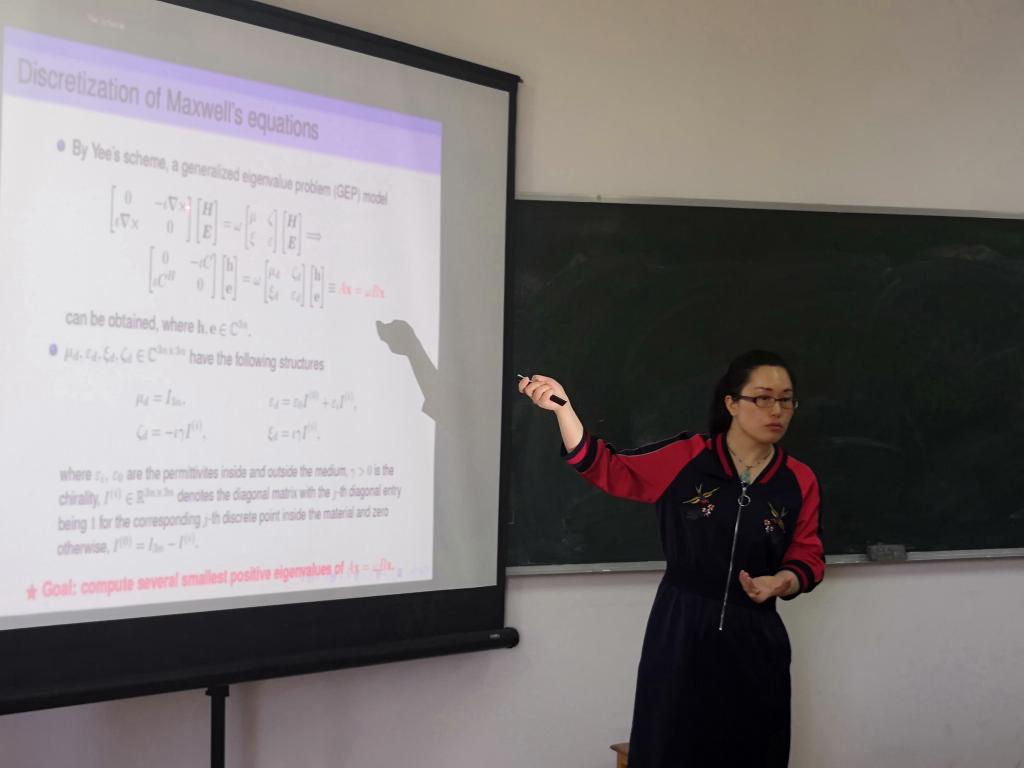 4月17日下午,应pa捕鱼官方网站邀请,东南大学博导李铁香教授在临海校区举行“三维光子晶体中特征值问题的快速算法”学术讲座。pa捕鱼官方网站副经理苏岐芳主持,pa捕鱼官方网站师生参加了讲座。
