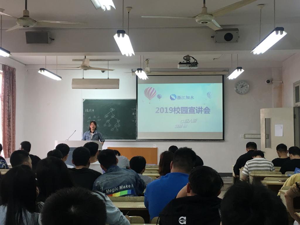 浙江知水信息技术有限公司坐落台州市区,是国有控股企业。公司为政府提供减灾兴利信息化全面解决方案,为产业用户提供减灾兴利信息与应用租赁服务,为社会公众提供减灾兴利信息与预警服务。宣讲会上,团队负责人从企业核心价值观、薪酬待遇、人才培养方案、工作环境等方面给员工们做了细致的讲解。公司招募项目助理、系统集成工程师、软件开发工程师、运维服务工程师等十余个岗位,和公司计算机、信管专业匹配度较高。