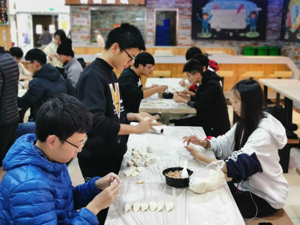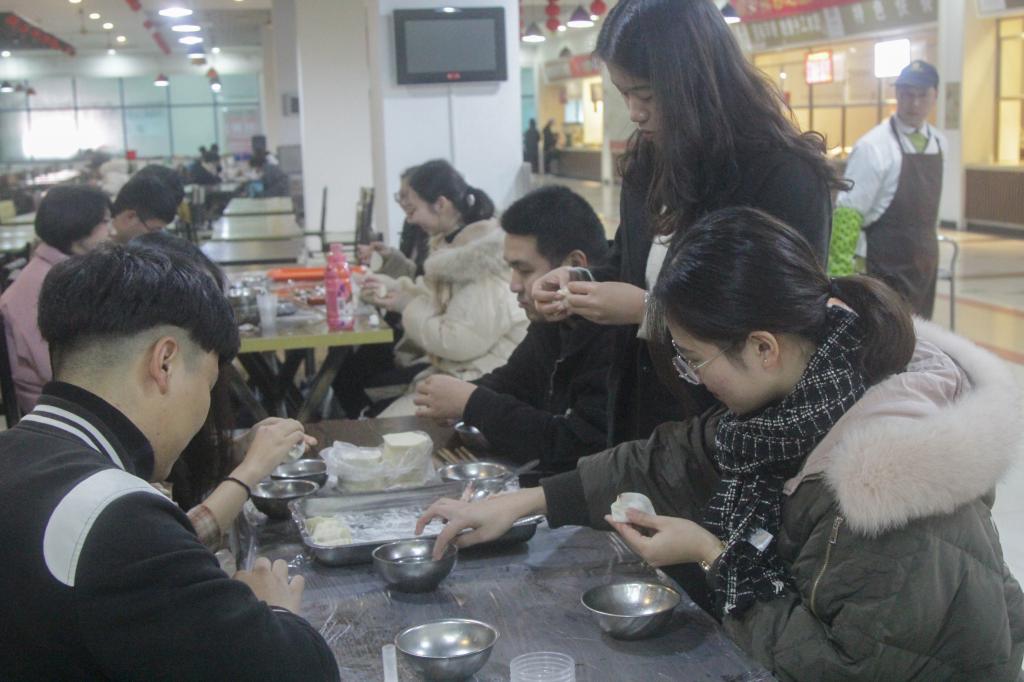 本次活动以“包饺子,连情谊,饺子宴,暖冬至”为主题,分为包饺子,写寄语和做游戏几个环节。活动在主持人的介绍中拉开序幕,大家开始动手包饺子,饺子有芹菜猪肉、白菜猪肉、香菇猪肉等多种类型,大家包的饺子形状五花八门,与此同时,同学们也交流探讨着学习与生活方面的话题,加深了各自的感情,现场一片欢声笑语。最后,同学们都享受到了自己辛勤劳动所得的成果。