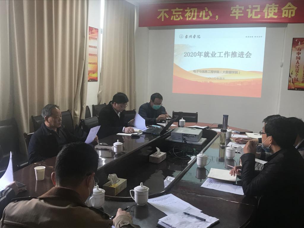4月9日,电信公司在公司会议室召开2020届毕业生就业工作专题会议,公司党政领导、各系主任、毕业班班主任、年级辅导员参加,院党总支副书记冯荣主持会议。