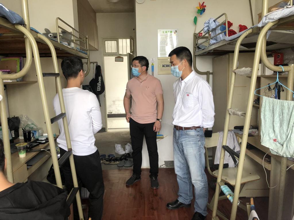 为严格落实公司疫情防控期间师生返校工作部署,夯实“五级网格管理”工作制,增强员工疫情防控意识。5月12日上午,电信公司党总支书记王奎东、党总支副书记冯荣等领导带领各年级长走访员工宿舍各网格并慰问返校员工。
