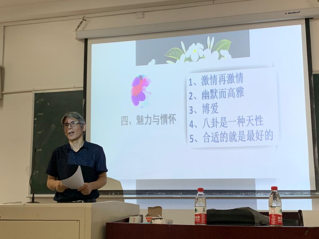 王老师先介绍班主任工作的特点,然后介绍了新时期员工的特点;最后,王老师详细地介绍了作为一个班主任应该具备的修养。王老师的讲座内涵丰富,深入浅出,深深地吸引着在座的师生。