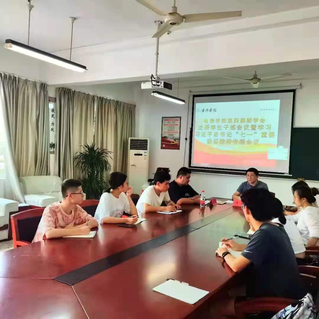 9月9日中午,pa捕鱼官方网站于临海校区5202教室召开全院第四届团学会主要员工干部会议暨学习习近平总书记“七一”重要讲话精神专题会议。公司党委副书记、纪委书记冯荣、辅导员沈迪和吴佳妲出席会议,团学会主要干部参加会议。