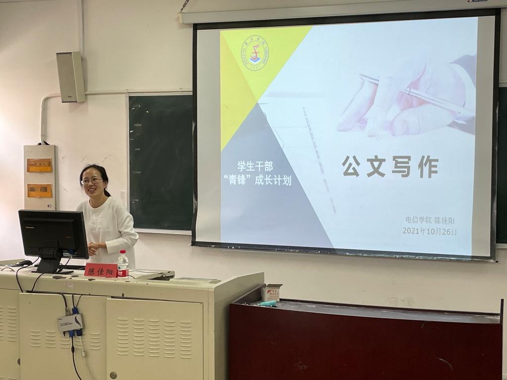 为提升新一届团学组织员工骨干的公文写作能力,10月26日中午,公司举办“青锋成长计划”第五讲“员工干部公文写作”专题培训,特邀辅导员陈佳阳分享公文写作的经验,公司全体员工干部参加了本次讲座。