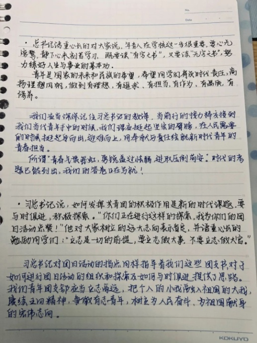 共青团员金乐盈同学表示,通过本次主题读书活动,我深刻体会到了习近平总书记对青年的深厚感情和殷切希望。唯有在平凡日子中积极进取,磨练意志,才能成长为于国有用的人。唯如此,才能为实现中华民族伟大复兴的中国梦贡献青春力量。