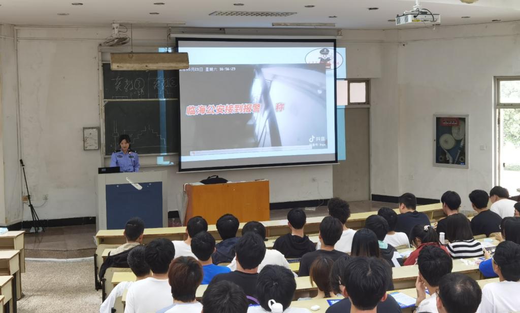 为进一步提高在校员工防范电信网络诈骗的意识和能力,近期pa捕鱼官方网站在校保卫处的支持下,再次邀请临海市公安局大洋派出所法制宣讲团徐扬益警官走进公司开展老员工防范电信安全教育讲座。各年级150余名员工参加,辅导员沈迪主持。