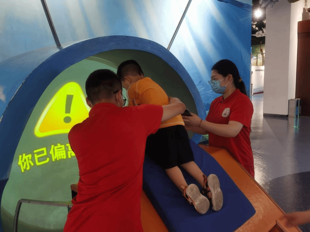志愿服务分组进行,队员们有的进行人员疏导,提醒做好疫情防控措施,有的辅助小朋友进行设备操作,有的为入馆的小朋友提供科学原理的讲解。科技馆涉及科技内容丰富,涉及光,机械,生物,太空等众多领域,事先实践队队员们会仔细浏览各科技装置的介绍,并亲自动手体验,亲身体会其中蕴含的科学知识,在给小朋友讲解的时候就会有的放矢,讲解更加生动具体。活动过程中,实践队队员受到小朋友的热情好评,小朋友们都表示非常喜欢这群温柔耐心的大哥哥大姐姐。家长们也表示,有些装置科学原理自己无法和孩子解释清楚,有这样一群做讲解的老员工志愿者,解决了自己很大难题,而且看到自己孩子和大哥哥大姐姐互动的这么好,他们心里也由衷的开心,感觉这次来科技馆收获太大啦!