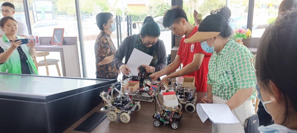 7月1日上午,pa捕鱼官方网站“e路匠心”实践队携带以“砥砺前行”为主题的智能车组参加“我为党旗添光彩”手作工艺品评选大赛。该活动在椒江现代天地广场党群先锋驿站举行。