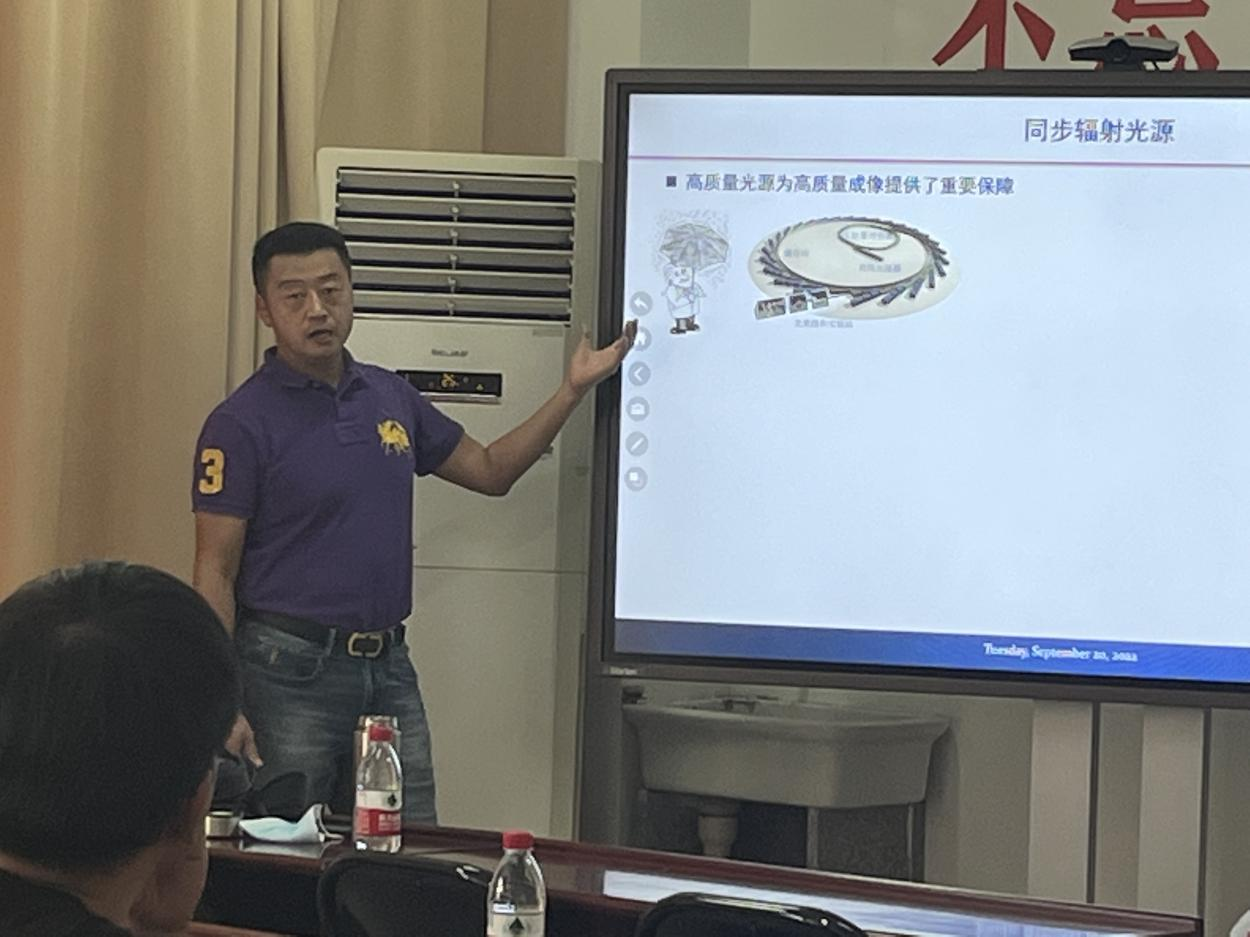 刘慧强教授长期从事X射线成像及生物医学应用,组建了先进成像与数据挖掘实验室,开展多维多尺度成像及生物医学应用;显微CT与无损检测智能化平台研制;X射线成像材料与器件开发。报告会上,刘慧强主要介绍了利用同步辐射X射线相衬成像原理与相位恢复算法,解决了传统X射线吸收成像无法对低Z弱吸收物质有效辨识的问题,为生物医学软组织肿瘤提供了微米级三维、快速、低剂量、无损结构检测的新技术,开展生物大分子红外谱学成像与软X射线纳米CT研究构造跨尺度多模态的肿瘤可视化表征手段,结合多维数据的机器学习开展肿瘤诊断与治疗评价研究。