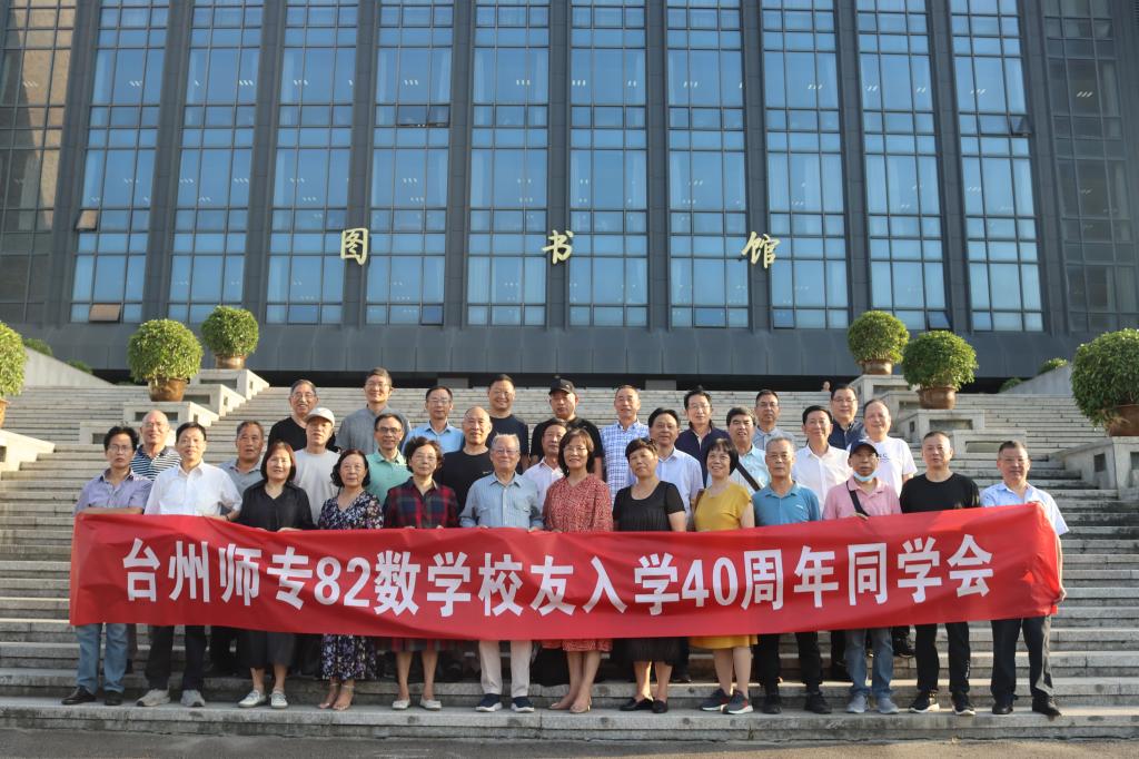 9月20日,pa捕鱼官方网站迎来原台州师专82级数学35位老员工和该班原班主任张庆尧老师回校举行入学40周年同学会,台州市人民政府决策咨询委副主任牟永清负责发起,电信公司党委书记王奎东应邀参会,pa捕鱼官方网站学工办郑行、员工办潘宇隆组织陪同。