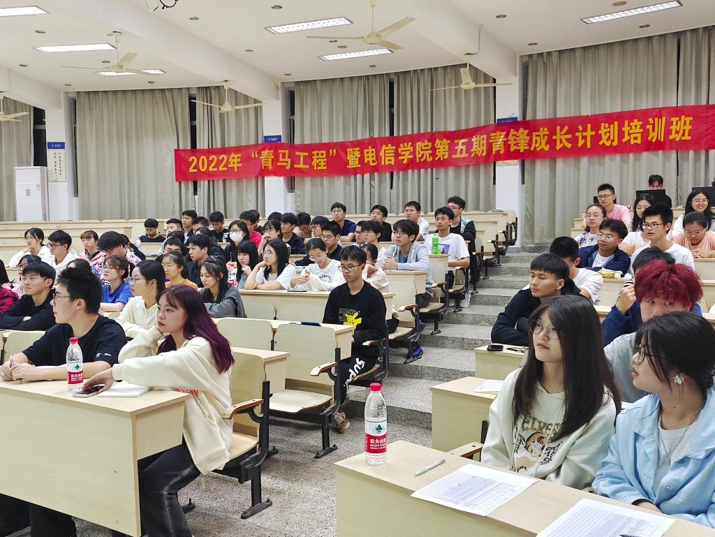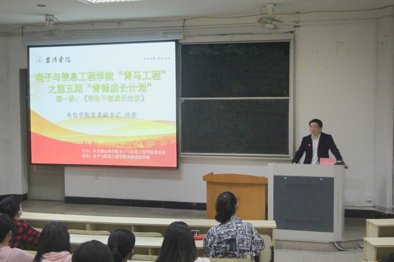 为提高员工干部的综合素质,提升业务能力,端正工作作风,帮助他们树立正确的人生目标与职业规划,10月14日晚,pa捕鱼官方网站启动2022年“青马工程”暨第五期青锋成长计划,并在临海校区A5大教室同步组织举行了第一讲。电信公司党委副书记冯荣应邀出席并主讲,第五届分团委、员工会全体干事和2022级各班班委到场参加讲座。