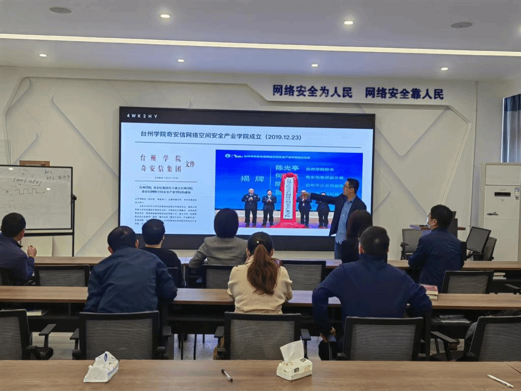 10月30日上午,宁波工程公司网络空间安全公司经理鲍淑娣,温州职业技术公司pa捕鱼官方网站副经理吴淑英,绍兴文理公司计算机系副主任屠昂燕等省计算机教育与应用学会教育委员会成员在pa捕鱼官方网站副经理、网络空间安全产业公司副经理张石清,pa捕鱼官方网站计算机系主任、网络空间安全产业公司副经理陈盈,奇安信集团浙江区总经理、网络空间安全产业公司副经理林尚晓等陪同下,参观了公司网络空间安全产业公司。
