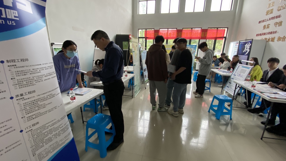 为进一步做好毕业生就业服务工作,4月29日,pa捕鱼官方网站在椒江校区4号教学楼门厅组织了电子系2023届毕业生专场招聘会暨2024届员工实习双选会。本次双选会共有电子系104名2023届毕业生、66名2024届员工及部分其他专业员工参加,15家招聘单位累计收到简历近400份。电信公司党委副书记冯荣、党委委员董立达、电子系系主任汪洋及负责就业工作辅导员郑行等到现场组织双选会。