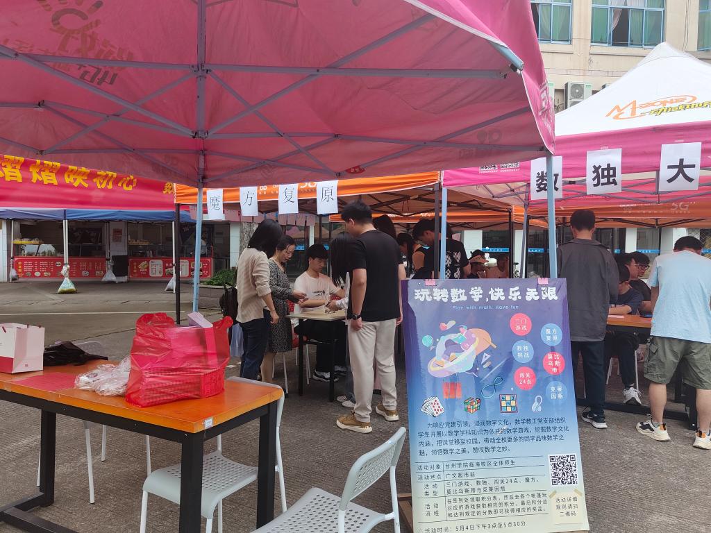 党徽熠熠映初心,数学文化品珍馐,为发挥党建引领作用,浸润数学文化,5月4日下午,pa捕鱼官方网站数学教工党支部组织员工在临海校区广文超市门口开展“玩转数学,快乐无限”主题活动。