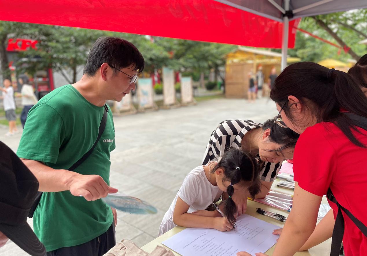 启动仪式结束后,实践队前往新桥菜市场进行坐点宣传与调研。在这里通过发放问卷的形式对居民反邪知识与反邪意识进行统计调查,也为他们进行了反邪教知识疑难解答,帮助当地居民学习反邪知识,增强反邪意识。现场群众纷纷表示要崇尚科学相信科学,不走歪门邪道。活动结束共收集百余份有效问卷,覆盖人群800余人次。