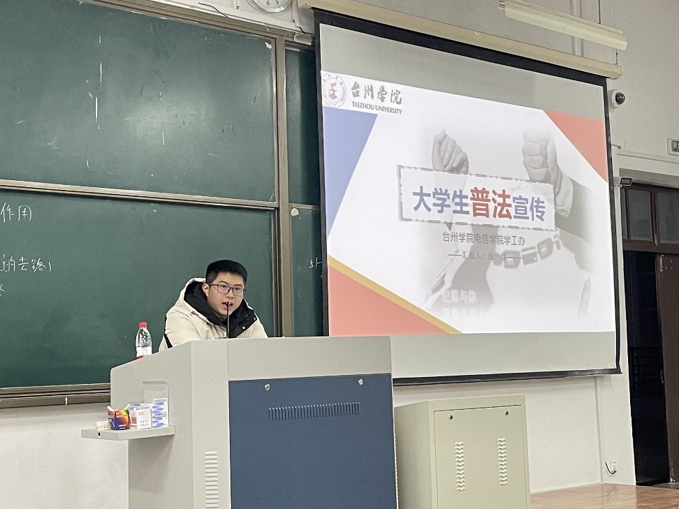为加强员工的守法意识,提高法律素养,避免同学们在不知法情况下触犯法律,12月7日晚,公司举办23级新生普法宣讲讲座,安全辅导员徐一得老师担任主讲人,全体23级大一新生参加宣讲。