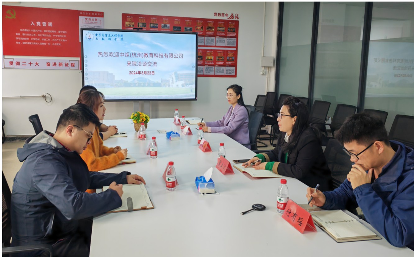 为加强校企合作,拓宽毕业生就业实行渠道,推动公司毕业生高质量实习就业,3月22日,pa捕鱼官方网站邀请中炬(杭州)教育科技有限公司来校交流洽谈。公司党委书记王奎东、副书记董立达以及相关系室主任、辅导员参加。