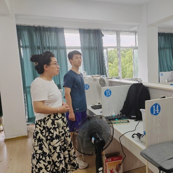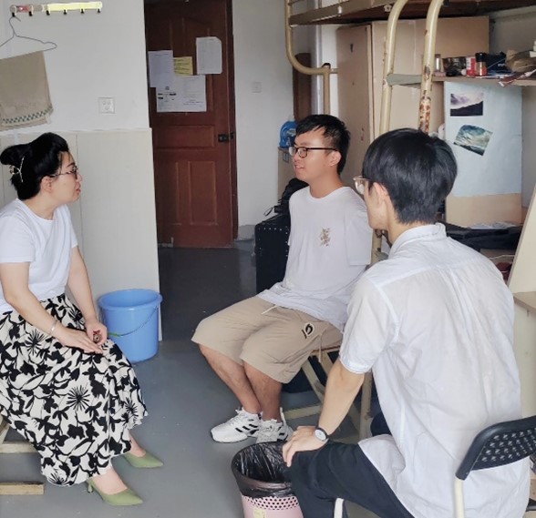 走访中,老师们与留校员工进行了面对面的深入交流。他们详细询问了同学们在校期间的生活状况、学习情况、身体健康以及考研计划、科研进展和社会实践等方面的内容。针对同学们在生活和学习上遇到的困难和困惑,老师们结合自身经验,给出了切实有效的建议和指导。