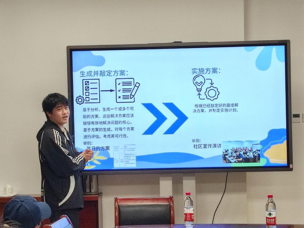 两位队长向大家展示了各自实践队的实践内容、实践过程、实践结果和实践反思。反邪教实践队队长章学圻对明确的目标与计划、有效的沟通与协作进行了强调,同时,他还指出,积极的态度与责任心、持续的学习与创新是团队每个成员必备的要素。e路匠心·“大树聚”实践队队长杨玉娇向大家分享了实践队在活动中遇到的困难和解决办法,她指出,面对突发状况要沉着冷静、随机应变,困难挫折是团队进步的阶梯。此外,两位队长对团队暑期实践活动诸多工作经验进行了分享交流。