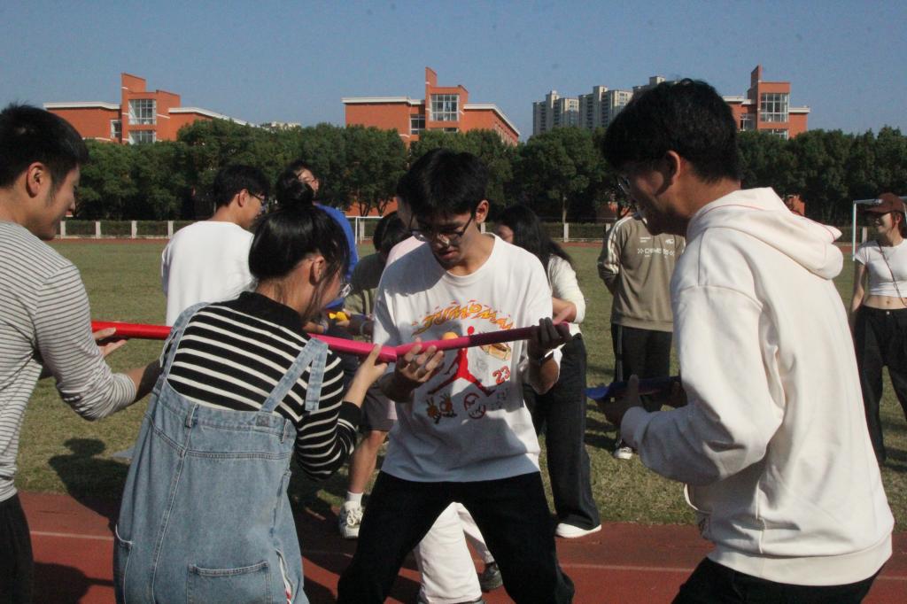 活动现场,“旋风跑、球行万里、盲人导航”简单的游戏背后考察的是同学们的团队协作能力、应变能力。“抢凳子比赛”则灵活考验同学们的谋略。“手忙脚乱”环节精彩纷呈,参赛者们全神贯注,勇往直前。踩气球游戏作为压轴环节,将活动现场氛围推向顶峰,助威声、呐喊声,与砰砰砰的气球踩爆声交相呼应。同学们尽情地享受竞技乐趣,缓解了压力。此次活动参赛者技术超群、战斗力爆表,观赛同学热烈助威、加油鼓劲,构成了十一月校园内亮丽的风景线,彰显了电信团学人的坚韧与勇气,加深了队员间了解和信任,体现了团队协作的重要性。