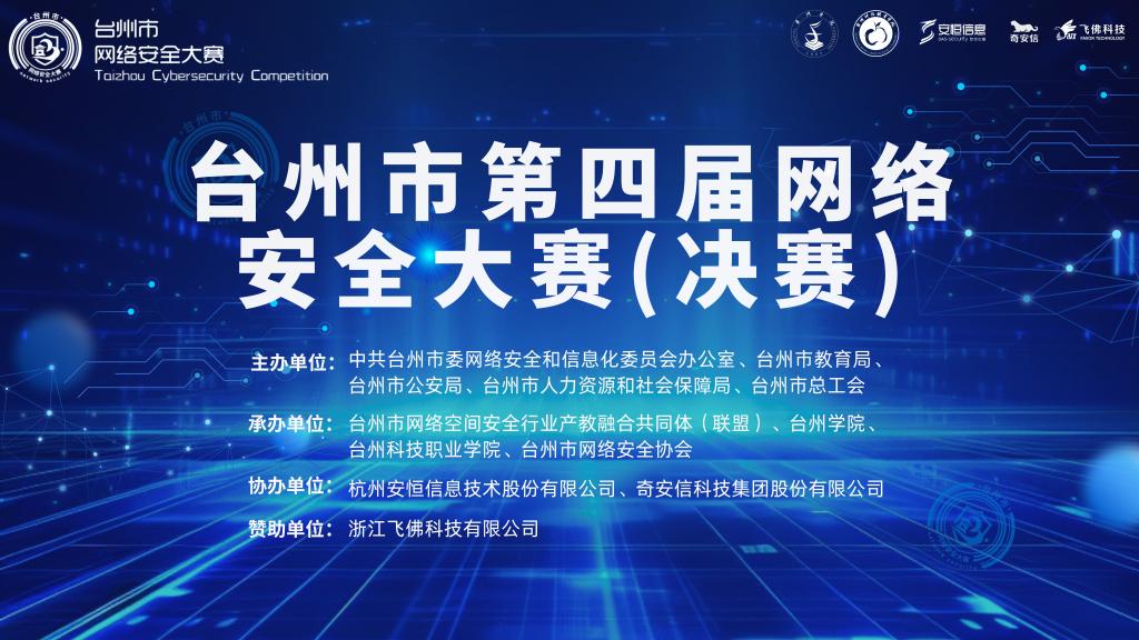 2024年11月15日,台州市第四届网络安全大赛(决赛)在公司举行。本次大赛由台州市委网络安全和信息化委员会办公室、台州市教育局、台州市公安局、台州市人力资源和社会保障局、台州市总工会主办,台州市网络空间安全产教联盟、PA捕鱼官网入口、台州科技职业公司、台州市网络安全协会承办,同时,杭州安恒信息技术股份有限公司与奇安信技术集团股份有限公司作为协办单位,为大赛提供了专业技术支持,浙江飞佛科技有限公司为本次比赛提供赞助。