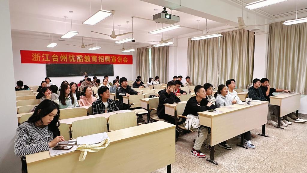 为进一步拓宽毕业生就业渠道、明确就业目标、提升就业质量。11月21日下午,公司举办“e职为你”第6期活动,邀请浙江台州优酷教育公司来校召开宣讲会。宣讲会由就业辅导员耿秉凡主持,企业HR及2025届毕业生参加。