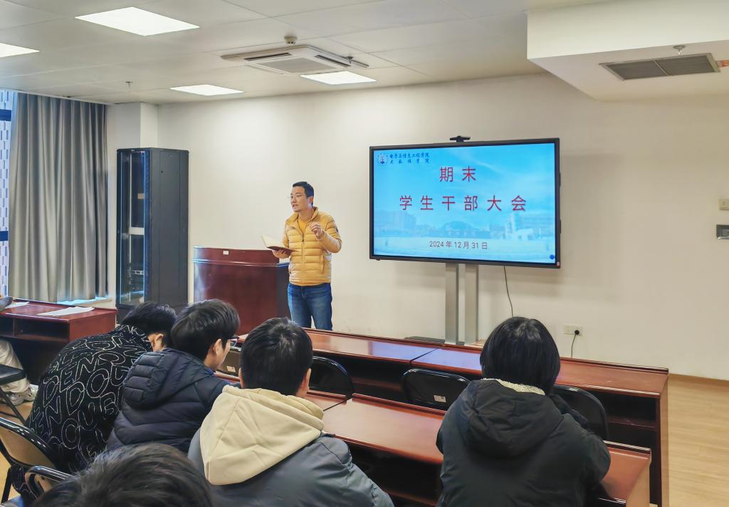为全面总结本学期员工工作,进一步加强期末安全教育,增强同学们的安全、诚信意识,2024年12月31日中午,pa捕鱼官方网站组织召开学工总结会暨期末安全教育大会。辅导员、全体员工干部参加会议,公司党委副书记董立达出席。