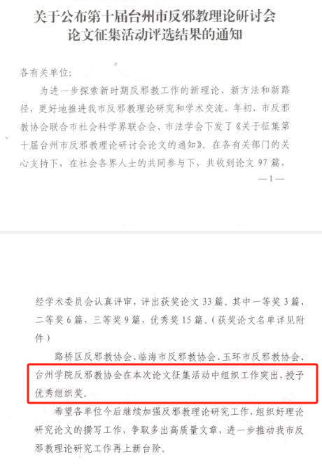 PA捕鱼官网入口反邪教协会被授予论文征集优秀组织奖