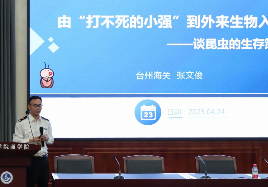 活动中,台州海关高级工程师张文俊、企管科副科长任超宇、法规科副科长徐伟伟分别围绕外来生物入侵防控、海关AEO制度及认证程序、知识产权海关保护展开宣讲。三位专家凭借扎实的专业功底和丰富的实践经验,将政策理论与实务操作有机结合,通过互动问答、案例分析等多种形式,使专业知识的讲解既生动易懂又富有深度。现场气氛活跃,师生们纷纷表示受益匪浅。