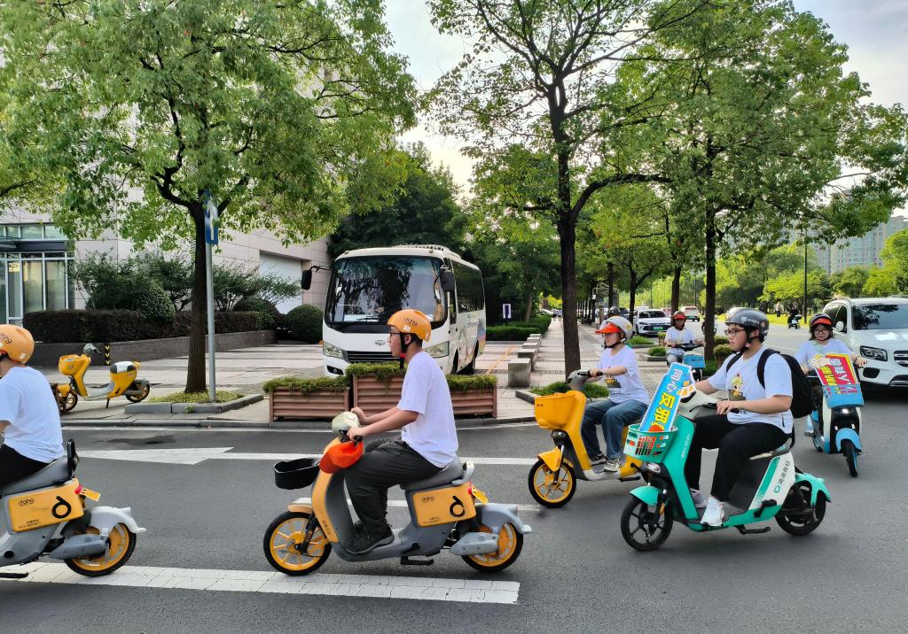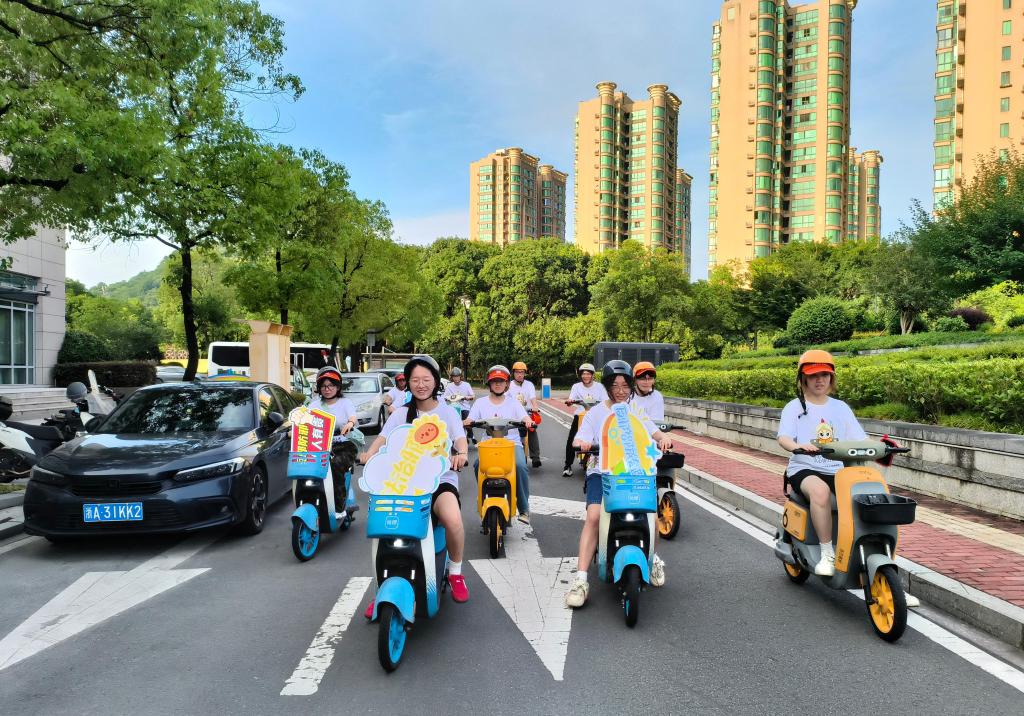 盛夏暑气蒸腾如浪,却浇不灭青春的热忱。实践队在台州市图书馆前集结,队员们身着统一标识服,骑着单车开启反邪教宣传之旅。此次骑行路线贯穿台州市文化馆、图书馆、市民广场、科技馆等地标,成为一道流动的反邪风景线。