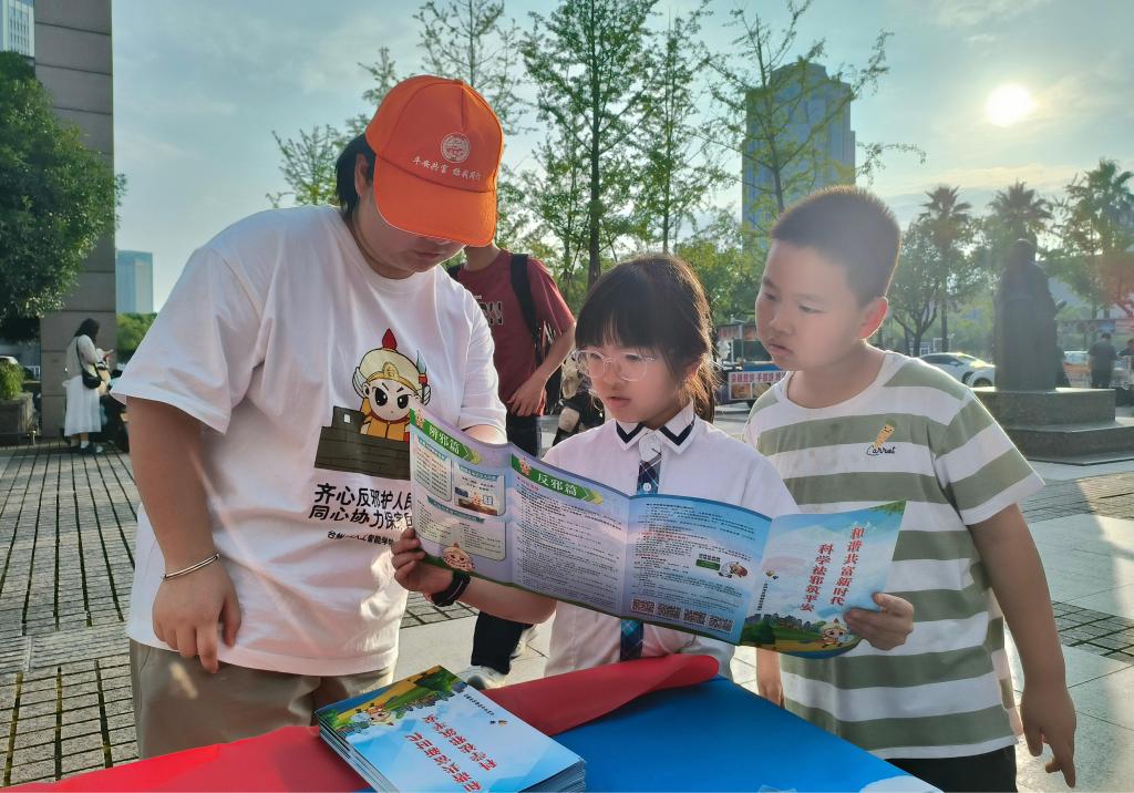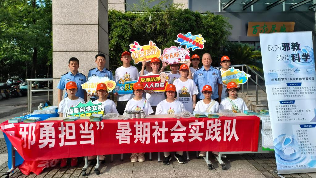 在台州市图书馆正门,实践队与民警共建了反邪教宣传站。现场设置的展板展示了邪教的危害,发放的资料深入剖析了邪教蛊惑人心的手段。近三个小时的宣传活动中,实践队走遍市区多个地标,共发放数百份宣传资料和礼品,惠及千余名市民。