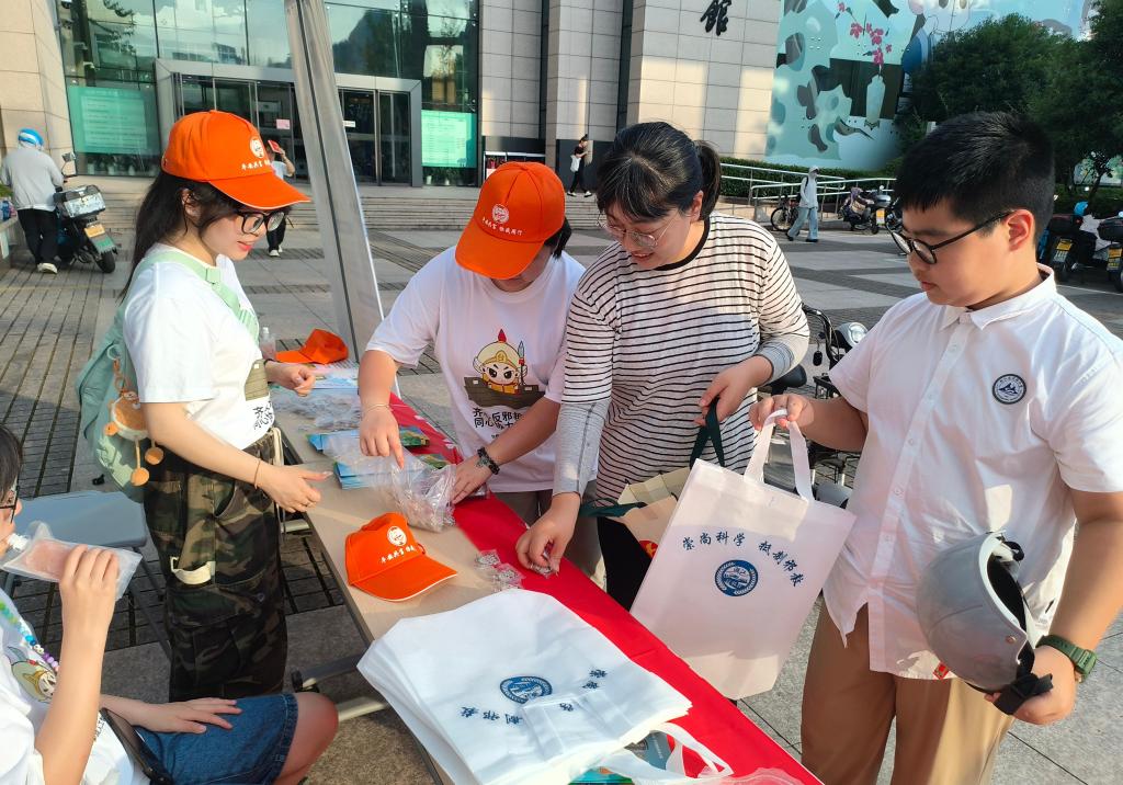 骑行过程中,车轮声与蝉鸣相伴,队员们虽满头大汗,但宣讲热情丝毫不减。在市民广场,队员们穿梭于熙攘的人群,停下脚步为市民讲解反邪教知识。他们一边展示宣传手册,揭露邪教“敛财害命”的本质,一边向市民发放印有“崇尚科学”标语的反邪钥匙扣,让大家在清凉中增强反邪意识。