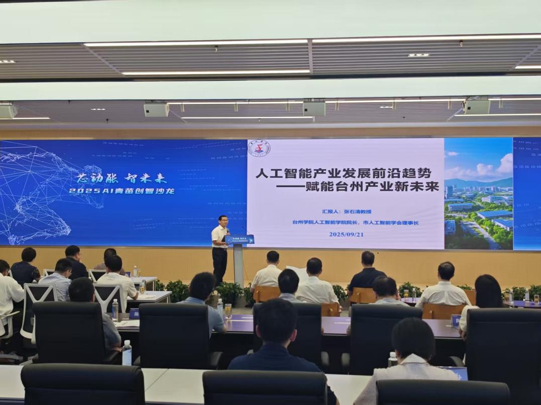 9月21日,“芯动能 智未来”—2025 AI青苗创智沙龙在台州城市大脑运营中心指挥大厅成功举办。本次活动由台州市府办“青苗团”与台州数据智能研究院联合主办,聚焦人工智能产业前沿与赋能新型工业化实践,为台州建设长三角人工智能创新应用先行地凝聚智慧力量。市政府副秘书长林贤杰、卢兆俊等领导出席,市府办、市经信局、市数据局等机关干部、知名企业负责人以及高校代表等共计100余位嘉宾出席了本次沙龙。