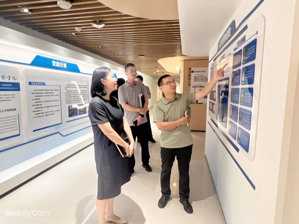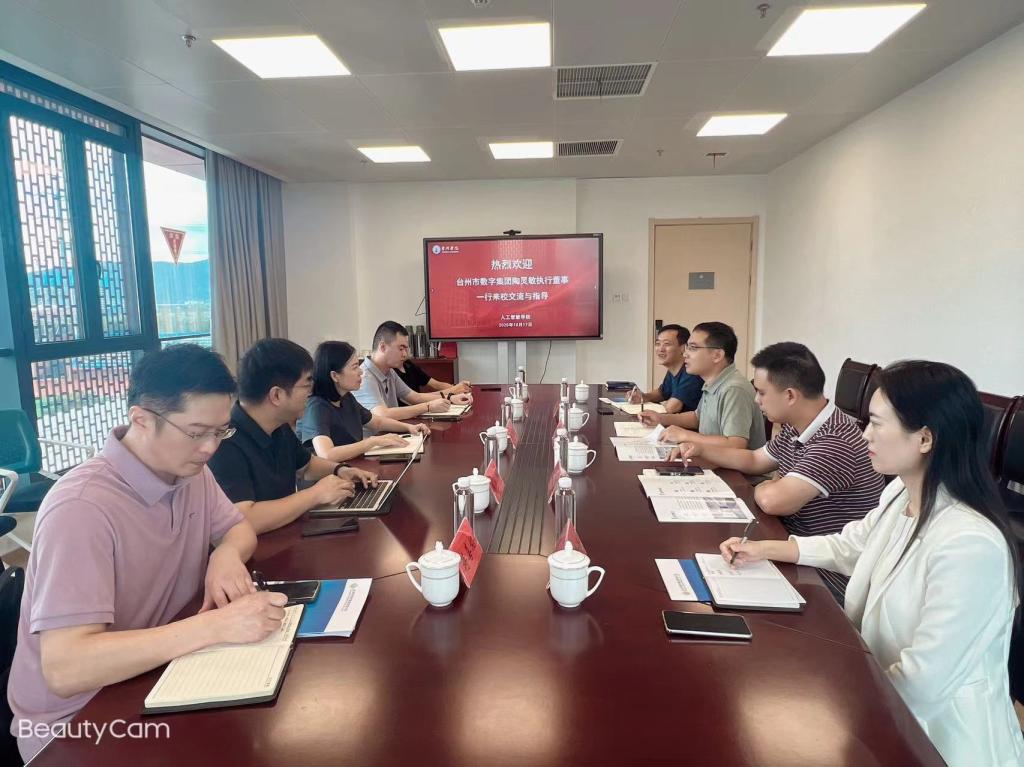 2025年10月17日上午,台州市数字集团执行董事兼总经理陶灵敏率领导班子一行访问pa捕鱼官方网站,座谈会在椒江校区科技综合楼333会议室举行。pa捕鱼官方网站经理张石清、副经理楼亮亮及相关专业系主任参加座谈。
