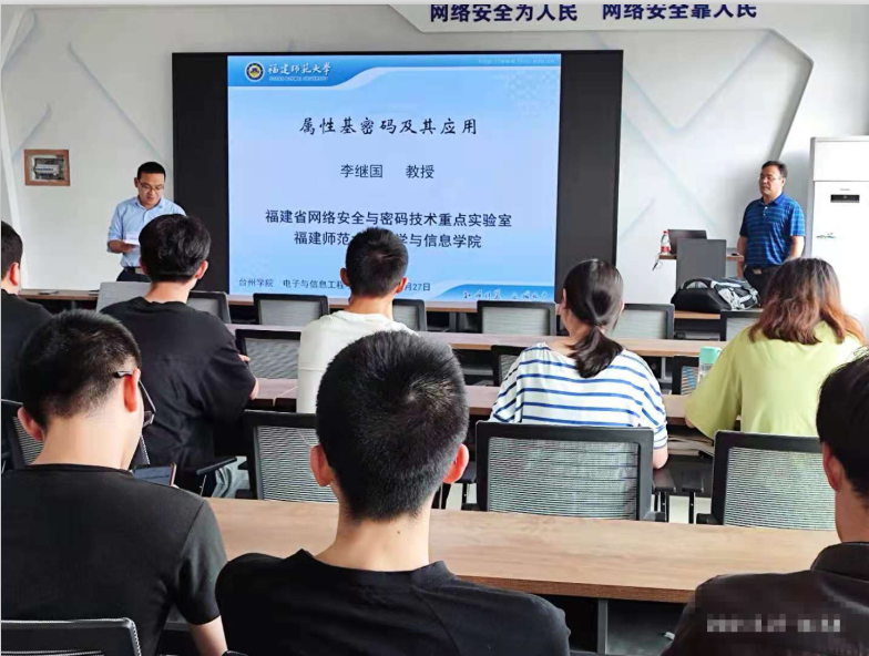 近日,应pa捕鱼官方网站邀请,福建师范大学闽江学者特聘教授李继国来校交流,并为奇安信产业公司师生作题为“属性基密码及其应用”的专题讲座。pa捕鱼官方网站副经理张石清主持。