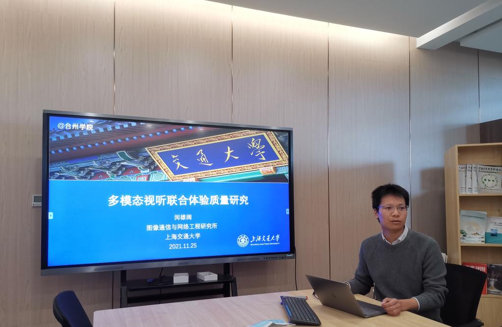 讲座上,闵雄阔介绍了与视听联合体验质量相关的若干问题,包括多模态视听注意预测、音视频联合体验质量评价等,并介绍课题组在视听联合体验质量方面的研究成果。