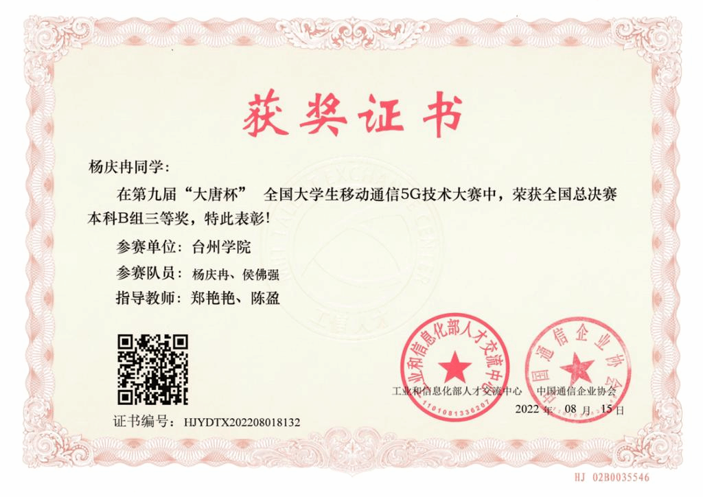 第九届“大唐杯”全国老员工移动通信5G技术大赛