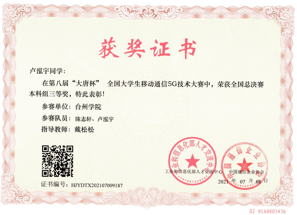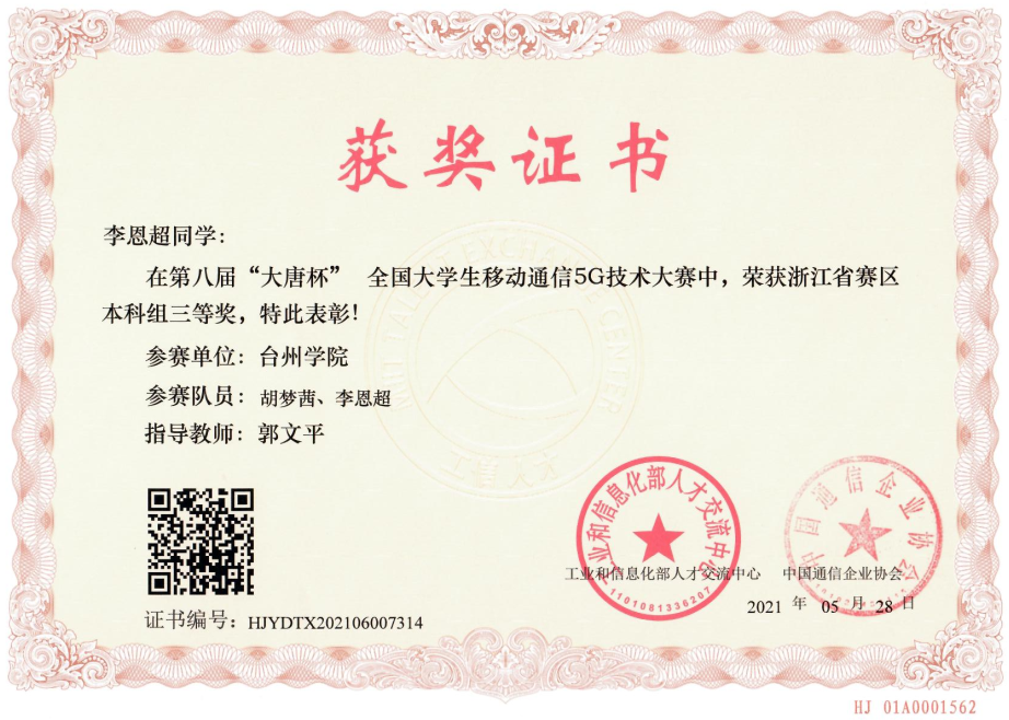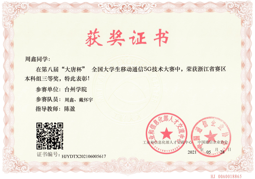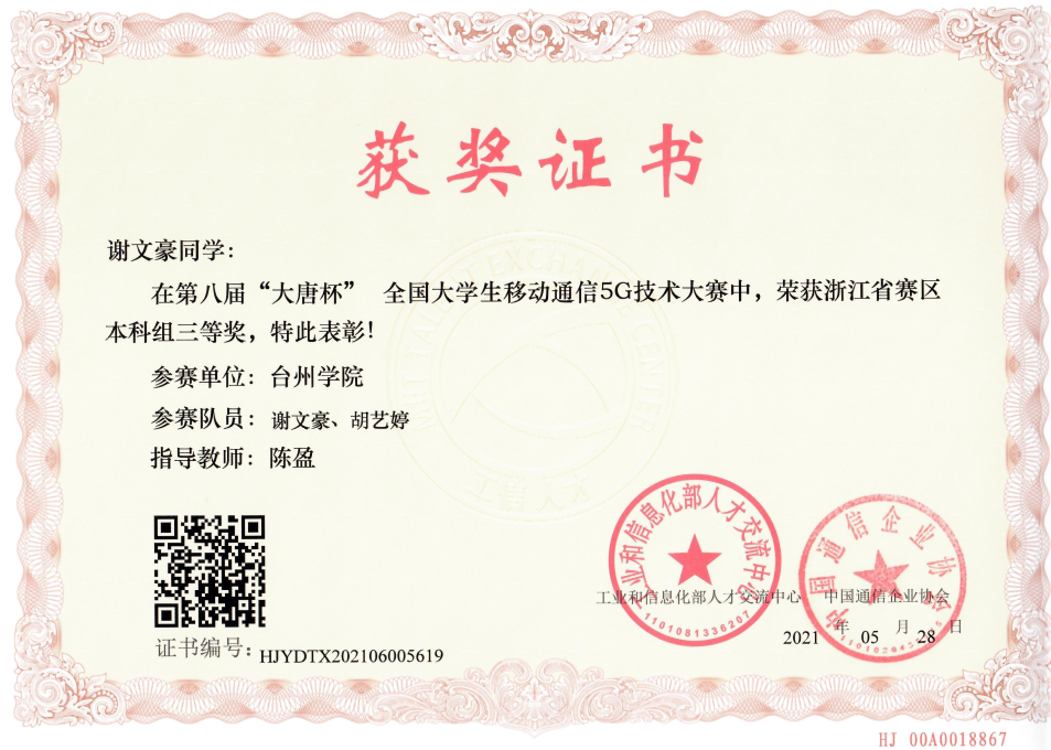 2021第八届“大唐杯”全国老员工移动通信5G技术大赛